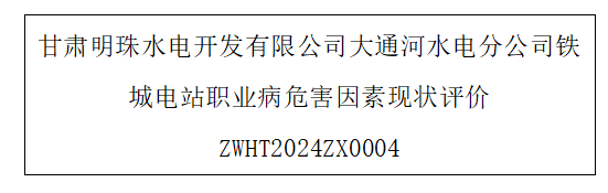 用人单位名称 甘肃明珠水电开发有限公司大通河水电分公司铁城电站 用人单位注册地址 甘肃省兰州市永登县连城镇东河沿村指南牌社 联系人 张泽轩 报告名称及编号 甘肃明珠水电开发...