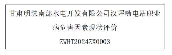 用人单位名称 甘肃明珠南部水电开发有限公司汉坪嘴电站 用人单位注册地址 甘肃省陇南市文县玉垒乡汉坪嘴电站 联系人 宋霞妹 报告名称及编号 甘肃明珠南部水电开发有限公司汉坪嘴...