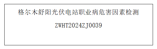 用人单位名称 格尔木舒阳光伏电站 用人单位注册地址 青海省海西州格尔木市东出口 联系人 张文俊 报告名称及编号 格尔木舒阳光伏电站职业病危害因素检测ZWHT2025ZJ0039 项目组人员 项...