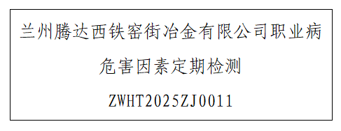 1 用人单位名称 兰州腾达西铁窑街冶金有限公司 2 用人单位注册地址 甘肃省兰州市红古区 3 联系人 李燕 4 报告名称及编号 兰州腾达西铁窑街冶金有限公司职业病危害因素定期检测ZWH...