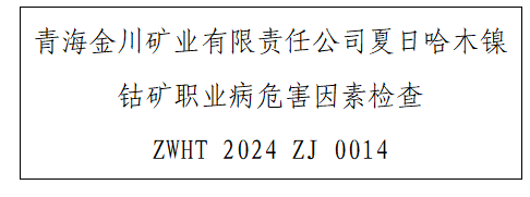 1 项目编号 ZWHT 2024 ZJ 0014 2 用人单位名称 青海金川矿业有限责任公司夏日哈木镍钴矿 3 用人单位地址 青海省海西州格尔木市团结湖路盐三巷3号 4 用人单位联系人 蒲智嵘 用人单位陪同人...