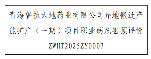 1 用人单位名称 青海鲁抗大地药业有限公司 2 用人单位注册地址 西宁市青海生物科技产业园区青海生物科技产业园经二路22号 3 联系人 马宝玉 4 报告名称及编号 青海鲁抗大地药业有限...