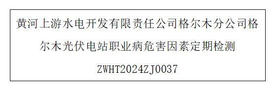 用人单位名称 黄河优阳格尔木光伏电站 用人单位注册地址 青海省海西州格尔木市东出口 联系人 张文俊 报告名称及编号 黄河优阳格尔木光伏电站职业病危害因素定期检测ZWHT2025ZJ0038...