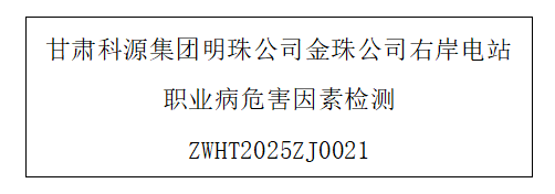 用人单位名称 甘肃金珠电力有限公司 用人单位注册地址 甘肃省兰州市安宁区银滩路321号 联系人 马宝娟 报告名称及编号 甘肃科源集团明珠公司金珠公司右岸电站职业病危害因素检测...