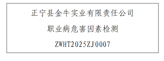 1 用人单位名称 正宁县金牛实业有限责任公司 2 用人单位注册地址 甘肃省庆阳市正宁县城工业集中区1号 3 联系人 张黎平 4 报告名称及编号 正宁县金牛实业有限责任公司职业病危害因素...