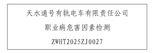 1 用人单位名称 天水通号有轨电车有限责任公司 2 用人单位注册地址 甘肃天水市麦积区成纪大道天水一中(麦积校区)西南150米 3 联系人 张翼萌 4 报告名称及编号 天水通号有轨电车有...