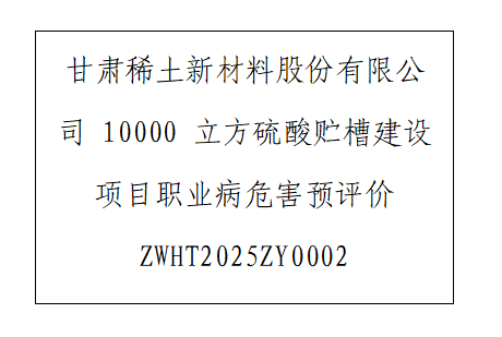 1 用人单位名称 甘肃稀土新材料股份有限公司 2 用人单位注册地址 甘肃省白银市白银区稀土新村 3 联系人 张红妮 15095790973 4 报告名称及编号 甘肃稀土新材料股份有限公司 10000 立方硫酸...